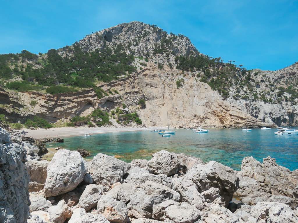 ¿La conocías? Esta es una playa muy conocida por la gente que tiene barco y es un punto del norte de la isla en el que casi siempre verás embarcaciones fondeadas. Pero como su acceso por tierra es un poco más complicado, en la arena suele haber muy poquita gente. Ese es uno de sus muchos encantos.